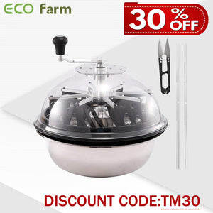Eco Farm 16 inch leaf bowl trimmer uses a clear plastic top for better visibility, a removable handle for convenient storage, and removable grille for easy service. This trimmer will cut twigs, remove leafs, and preserve buds from a variety of plants. The Eco Farm trimmer is essential in making hash, oils, aromatherapy products, and potpourris. It harnesses the power of 30 scissors in 1 unit and comes with 2 straight blades.