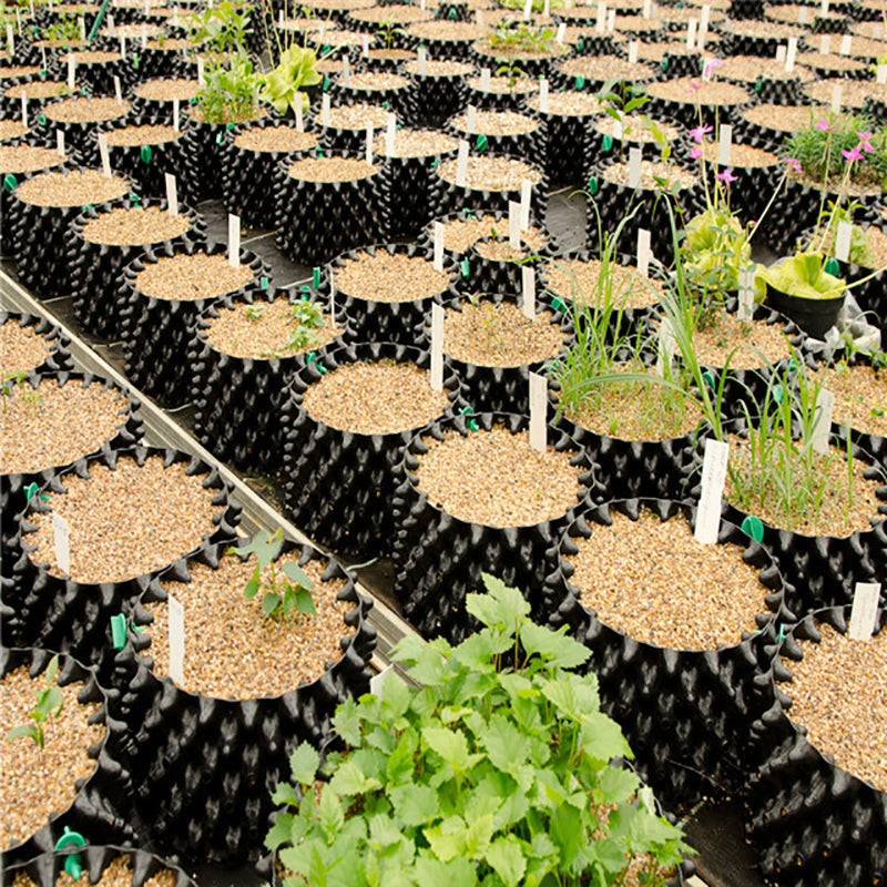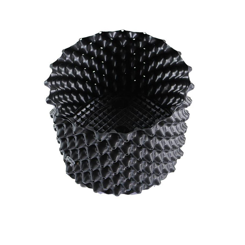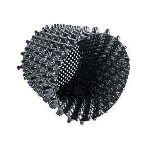 Due to the structure of these root pruning pots, the roots will be guided to the air holes at the end of the cones, where the tips of the roots will dehydrate, or are air-pruned. The plant will react by sending out more roots to compensate the loss.