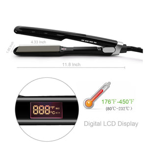 • Flat iron temperature is adjustable up from 176F to 450F to give you an optimum temperature setting that is consistent across the two plates, 30S instant heat up.