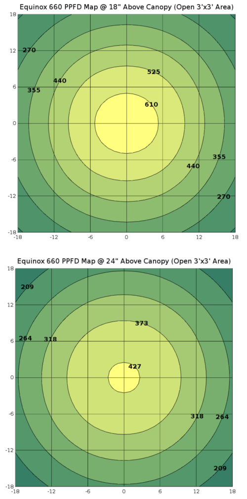 The Equinox 660 utilizes the latest LED technology available from Samsung to deliver an impressive 1057μmol/s. Drawing only 320 watts this light offers a 52% energy reduction when replacing a 600W HPS light. Trichome production is increased by 10% - 15%. Cooling costs are reduced by over half. Expect 90,000 hours (20 years @ 12hrs/ day) of use with less than 10% light depreciation. Proudly manufactured in Canada this light is backed by a 5-year warranty. The rugged workhorse design makes this fixture the obvious choice for growers seeking a high production and low energy lighting solution.