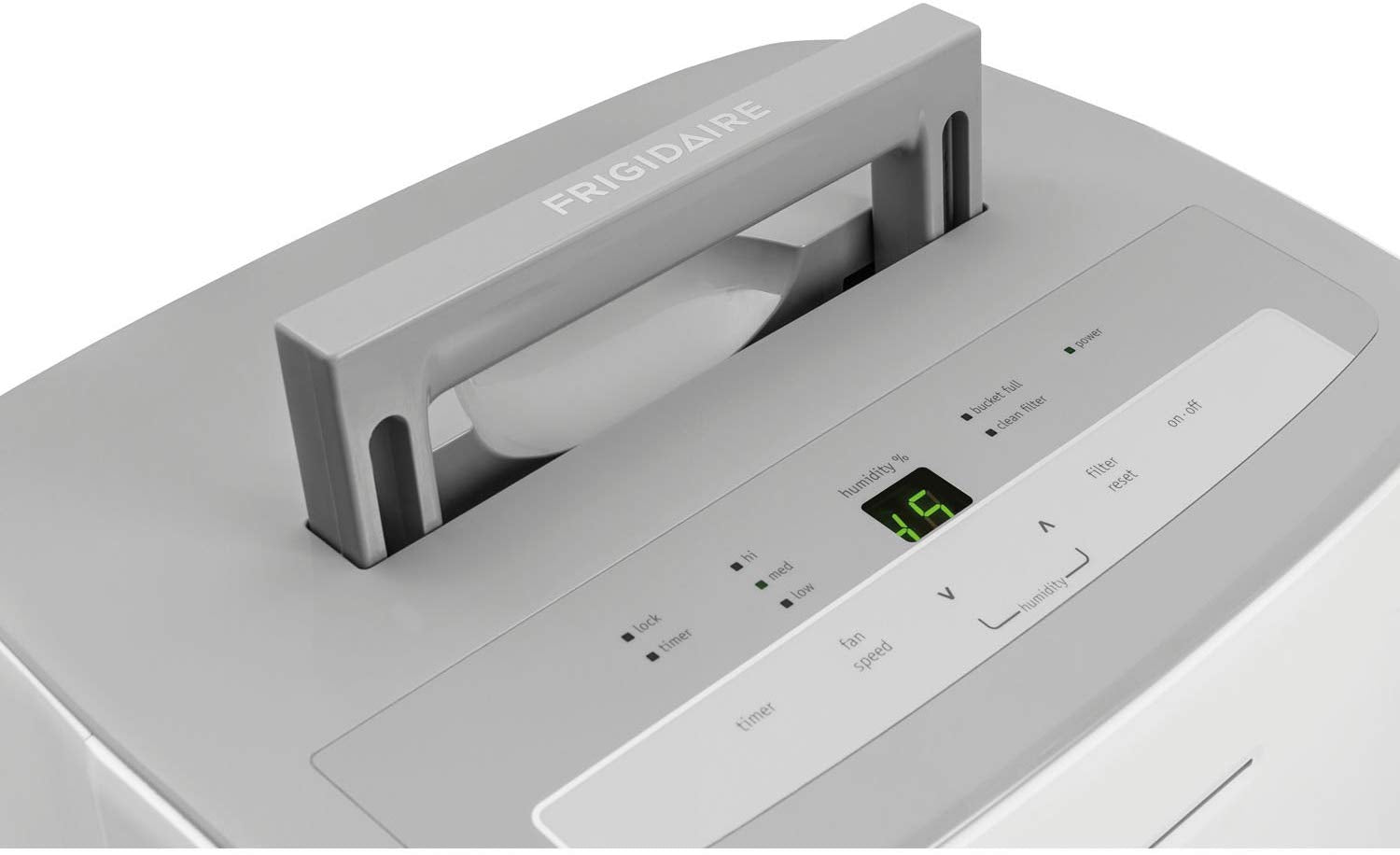 The Frigidaire 70-pint dehumidifier protects your home from mold and mildew caused by excess moisture. It also helps eliminate bacteria in the air that can make breathing difficult. Frigidaire’s 70 pints-per-day dehumidifier is capable of continuous operation when the unit is located near a suitable drain. Ready-Select electronic controls include a digital humidity readout, 24-hour on/off timer and control lock. Effortless Humidity Control allows you to control the exact percentage of humidity in your room. The SpaceWise portable design includes a top handle, integrated side handles and caster wheels making it easy to move your unit from room to room.
