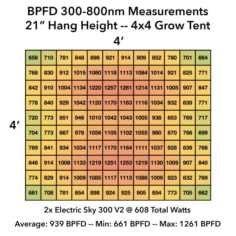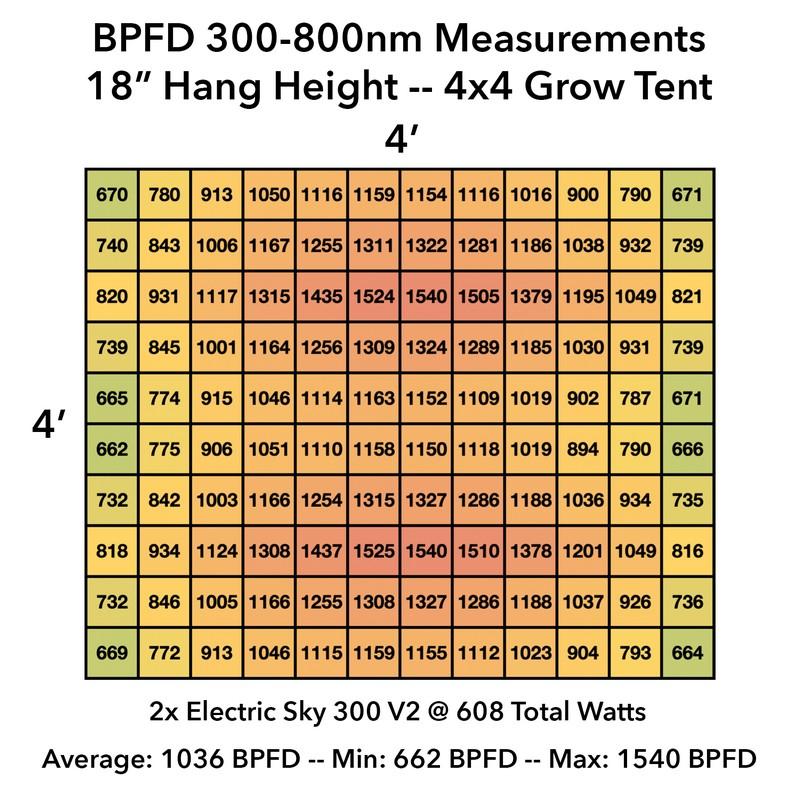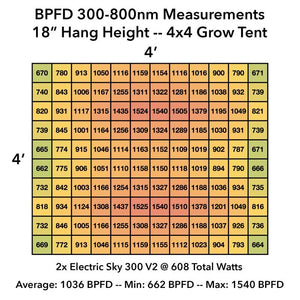 The Electric Sky 300 pulls a true 300 watts from the wall, and its wideband spectrum has been proven time and time again in side-by-side tests to achieve equal or better results than HID with 40% less power and 50% of the heat.