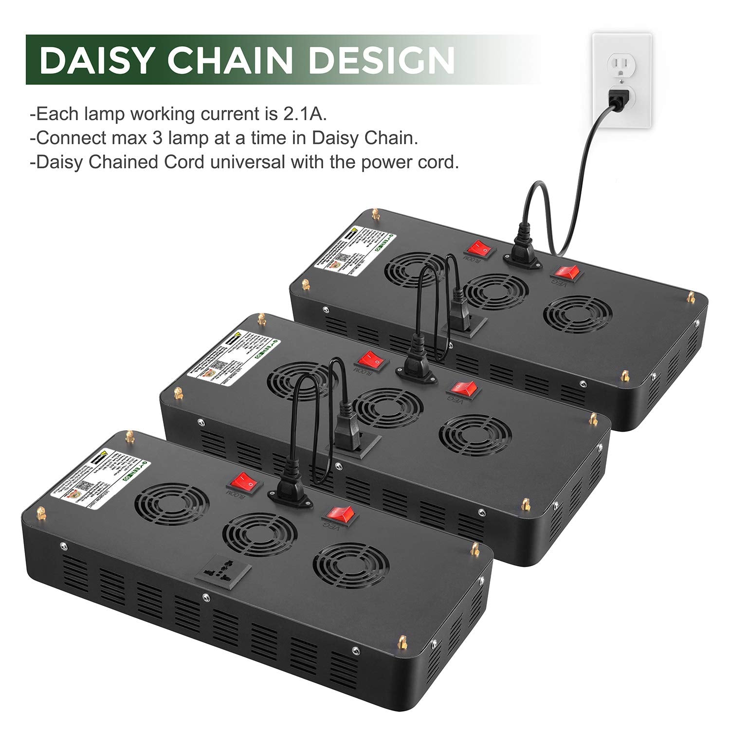 Daisy chain compatible to make less cords,which can connect with another led grow lights to extent the coverage. Not more than 3 pcs lights can be connected and used together by power cords,one item working current 1.5 A.Energy & money & time saving.