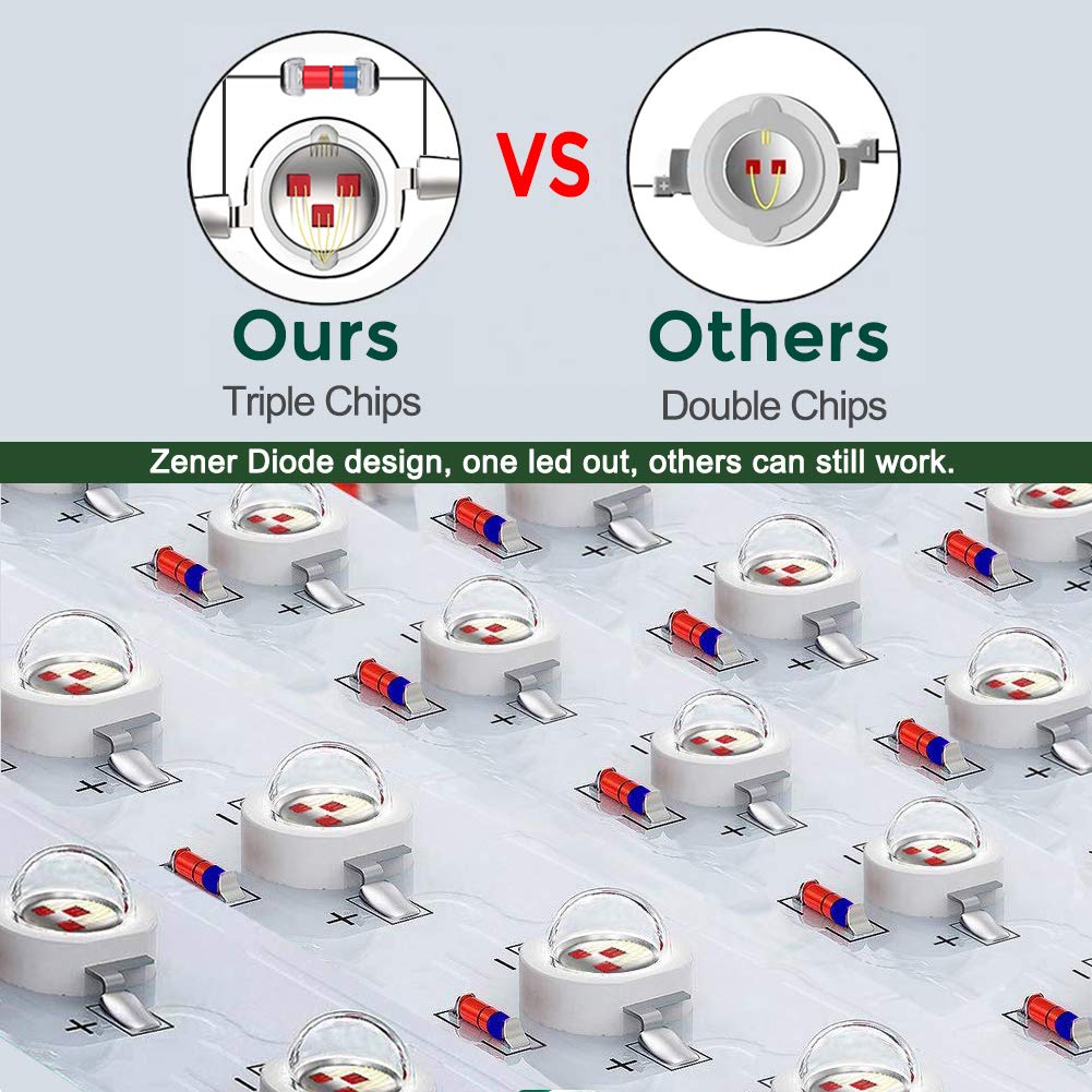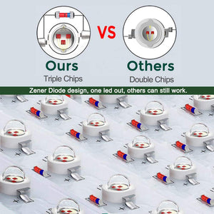 Triple-chip LEDs,which is much brighter and efficient than double chips,scientifically engineered to keep the balance of the PAR/Lumen Output and Coverage.And compares to traditional HPS/MH while consuming only 248 watts.