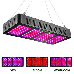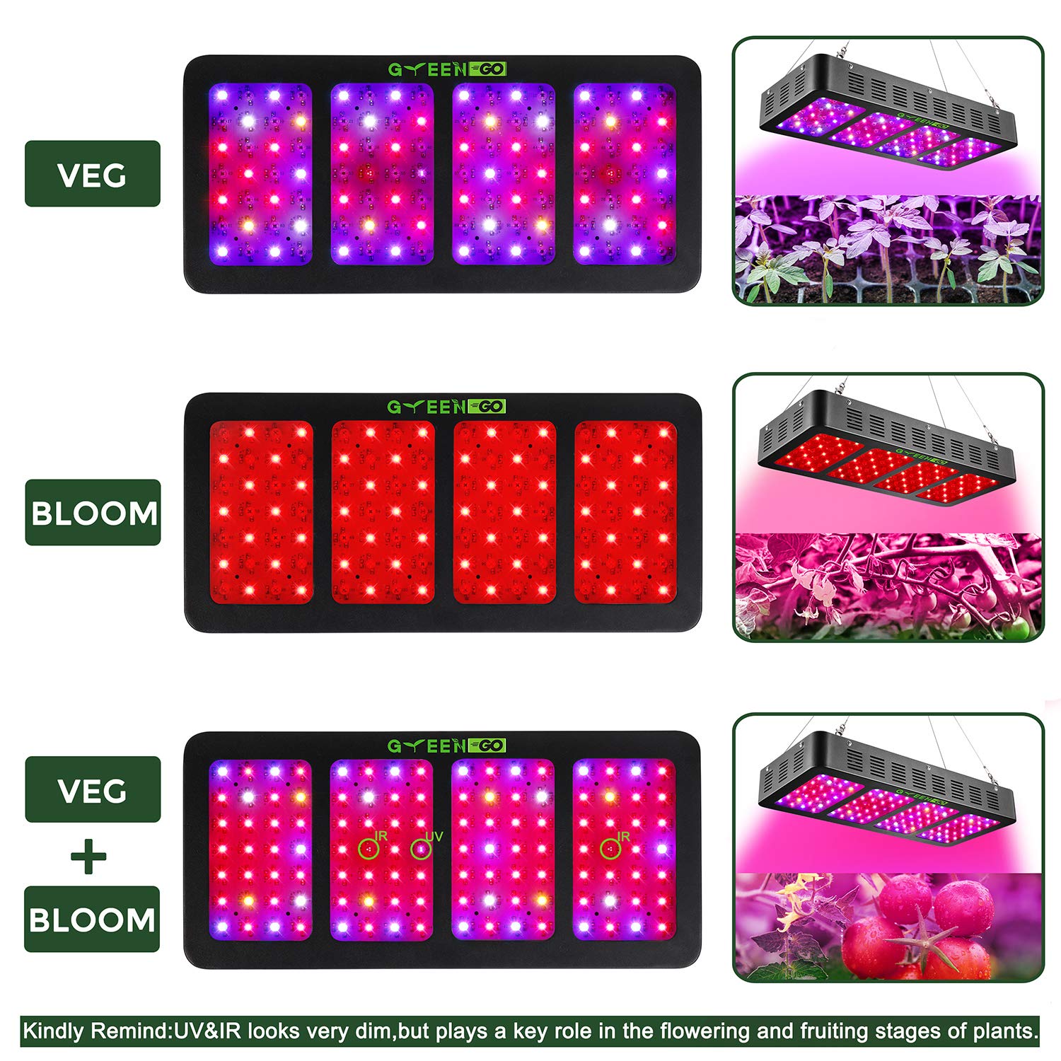The difference of us is that 1200w led grow light use 3 high speed cooling fans+built-in aluminium heat-sink, all of them constitute a powerful cooling system which can dissipate the heat from the lamp inside to outside efficiently, better heat dissipation than others, ensure the long lifespan and let the led grow light working in a good environment, and won't burn your plants, cool and quiet.