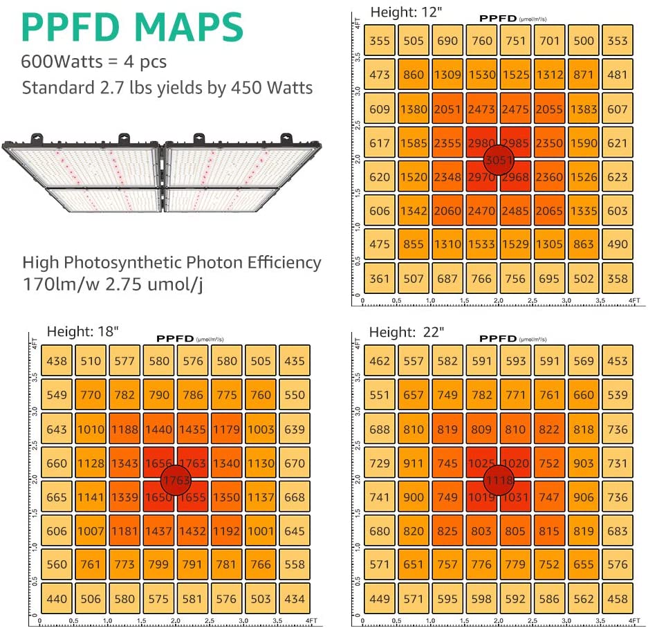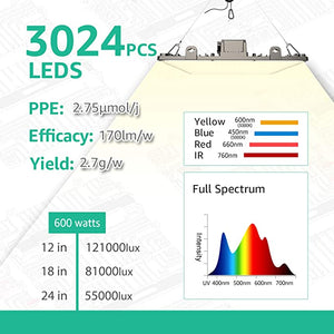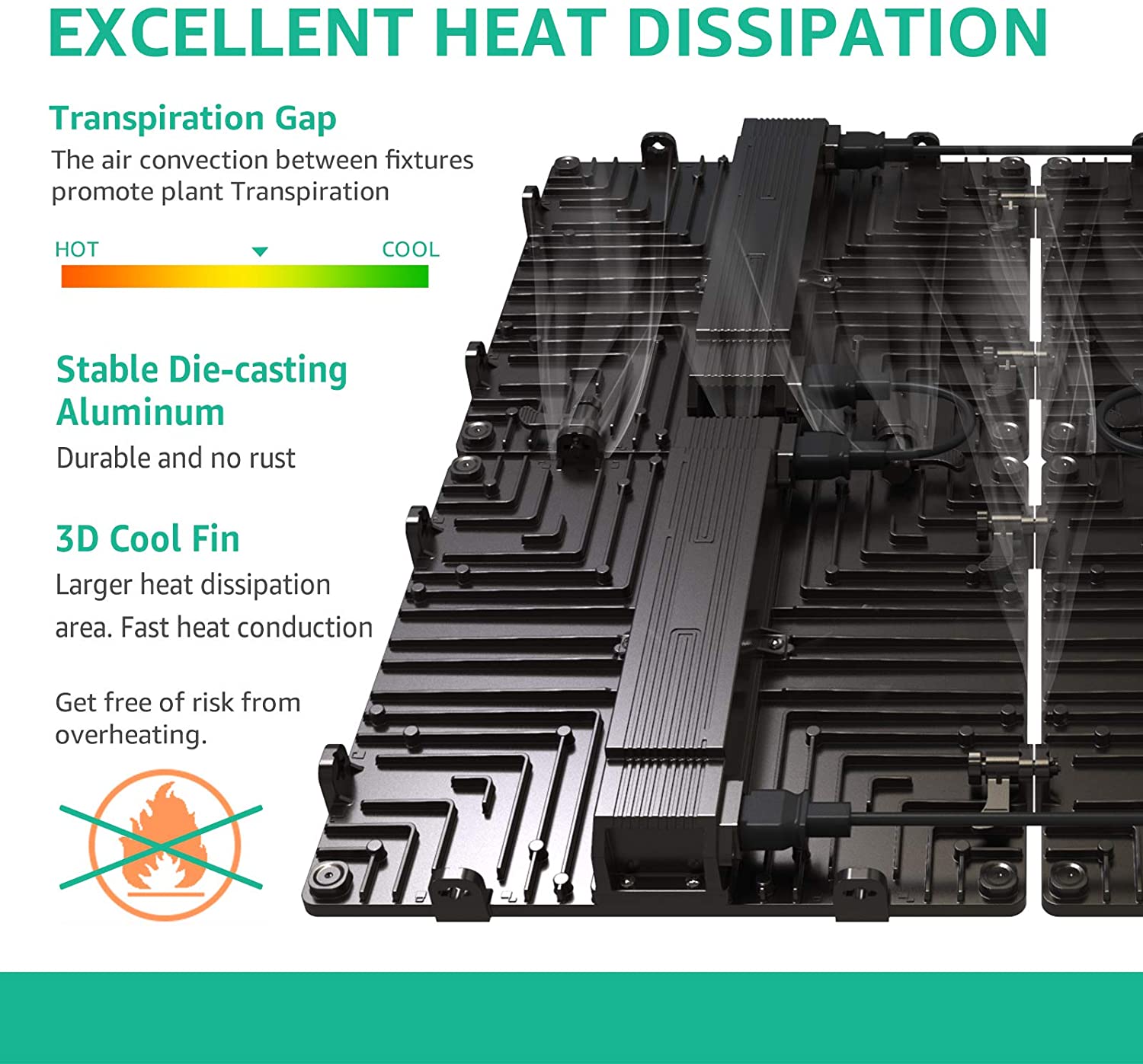To provide the highest energy for the plants, Groplanner LED grow light adopt the top grade LEDs equal to Sumsung 301H SM grade flux bin. With the same power draw, Groplanner's LED quantity is twice as many as other brands. The high energy provided by this led grow light will penetrate the plants from top to bottom, promote the rapid growth and get higher yields.