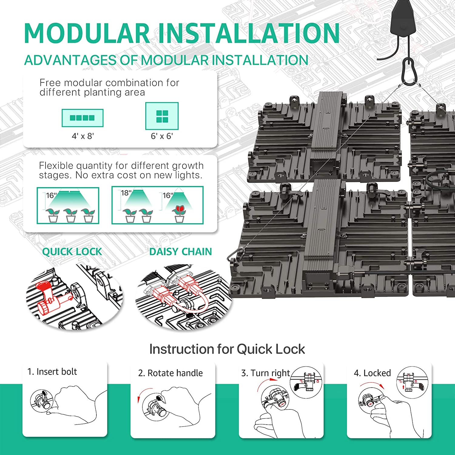Innovative technology and smart design with amazing yields. All the smart features: high PAR, full spectrum, smart control, daisy chain, etc., will let you enjoy your cushy planting and get excellent high yields!