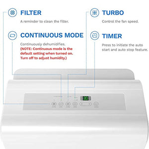 ELIMINATES MOISTNESS, ODOR & OTHER THINGS YOU HATE - Moist is a bad word. Our portable dehumidifier reduces odors and allergens by removing bacteria from humid air through its built-in pump compressor. It also features a Turbo mode that increases fan speed from Normal Air CFM 129 (cubic feet per minute) to High Air CFM 138 for maximum moisture removal and odor reduction.