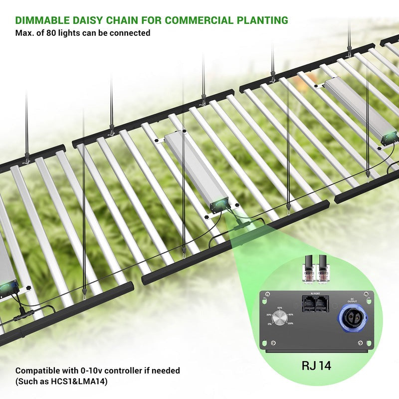 The Hyphotonflux PRO-720W Full Spectrum LED Grow Light features Samsung LM281B+Pro top box diodes and improved red lighting for improved crop quality. With its high-efficiency diodes, the PRO-720 is suitable for larger footprints up to 5 x 5 feet.