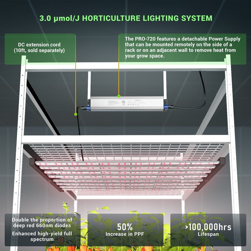 PRO-720 is suitable for different indoor gardens. You can set it up for soil, hydroponic, greenhouse and vertical rack setups.