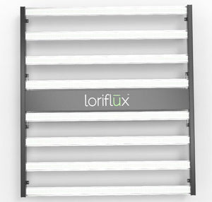The Loriflux 8 blade is full spectrum top and vertical lighting solution designed and engineered by growers for use in full cycle cultivation. With variable power levels and a rigorously developed and field tested spectrum, our light vastly simplifies the growing process while allowing even the most seasoned veterans the control and power to exceed yields beyond anything they have ever experienced. For optimal results we recommend that this fixture is used in environments with supplemental CO2 at a range of 800-1400PPM due to high concentration of PPFD.