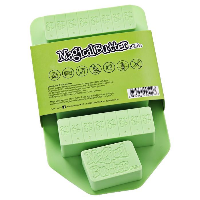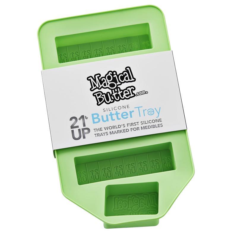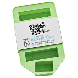 MagicalButter’s 21UP™ Butter Trays identify medicated butter as “for adults only.” Full sticks are divided into eight tablespoons, each clearly marked with the distinctive 21UP™ logo. Flexible, high-quality silicone provides a premium surface for infused butters and oils. Makes a total of four full-size sticks plus one fun-size stick. Heat-resistant and dishwasher-safe