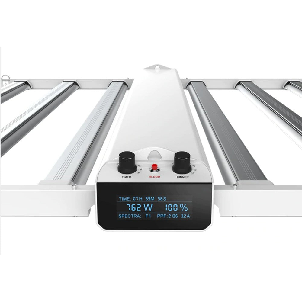 The onboard easy-to-read LCD display lets you quickly and easily check timing settings, power, dimming, spectrum, PPF, and more. There are two built-in knobs above the screen. The right one allows you to easily dim the light from 100% to 80%, 60% and 40% intensity without any external controllers, while the other is for your plants on 12/14/2016 Schedule time/18 hours. The Bloom button is located between the two knobs, allowing you to switch the spectrum from Plant (V1) to Bloom (F1).