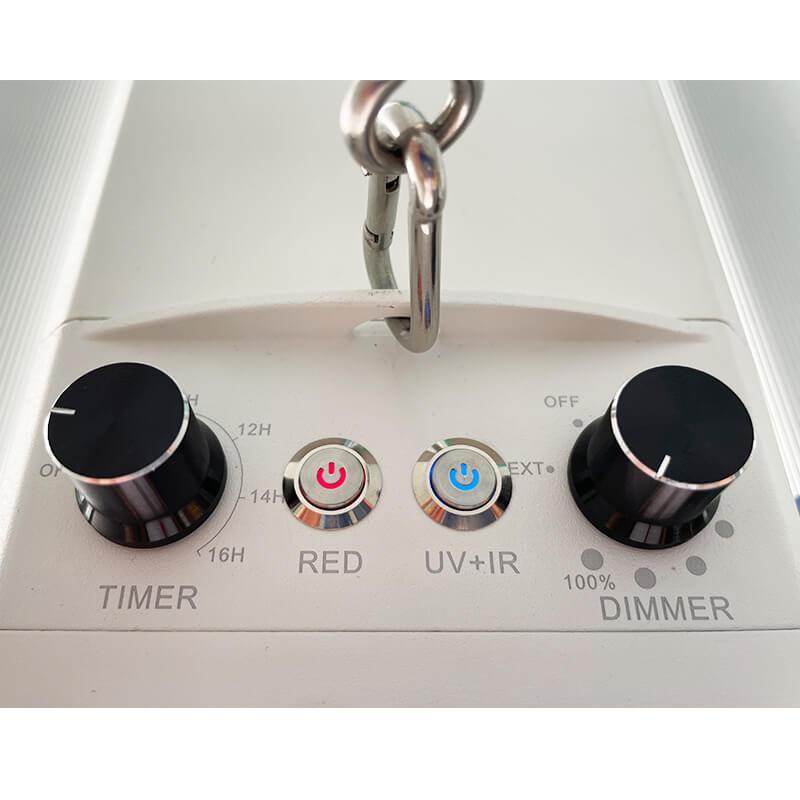 The two tuning knobs placed on top of the screen will allow you to set the lighting schedule to 8-14 hrs per day and adjust the brightness to your specific needs from 100% - 30%.