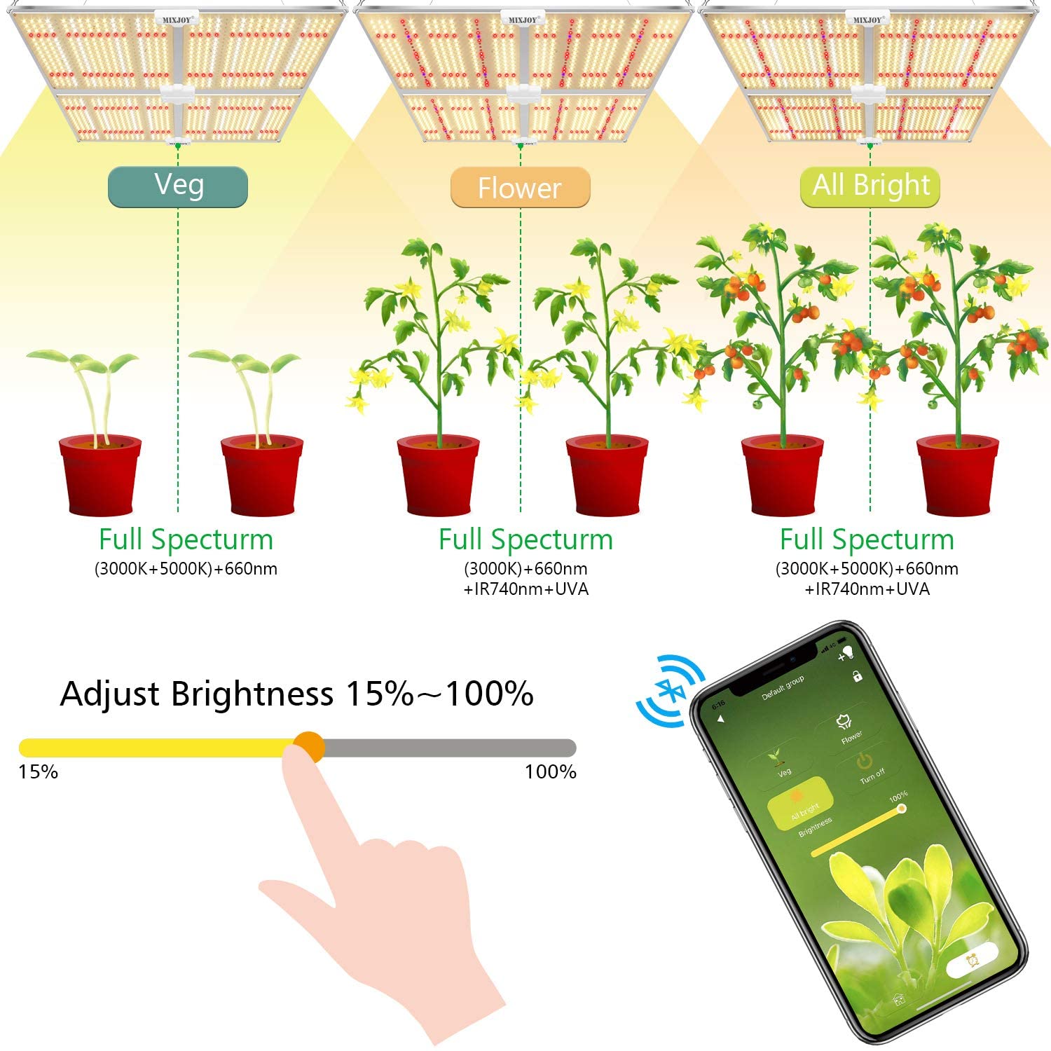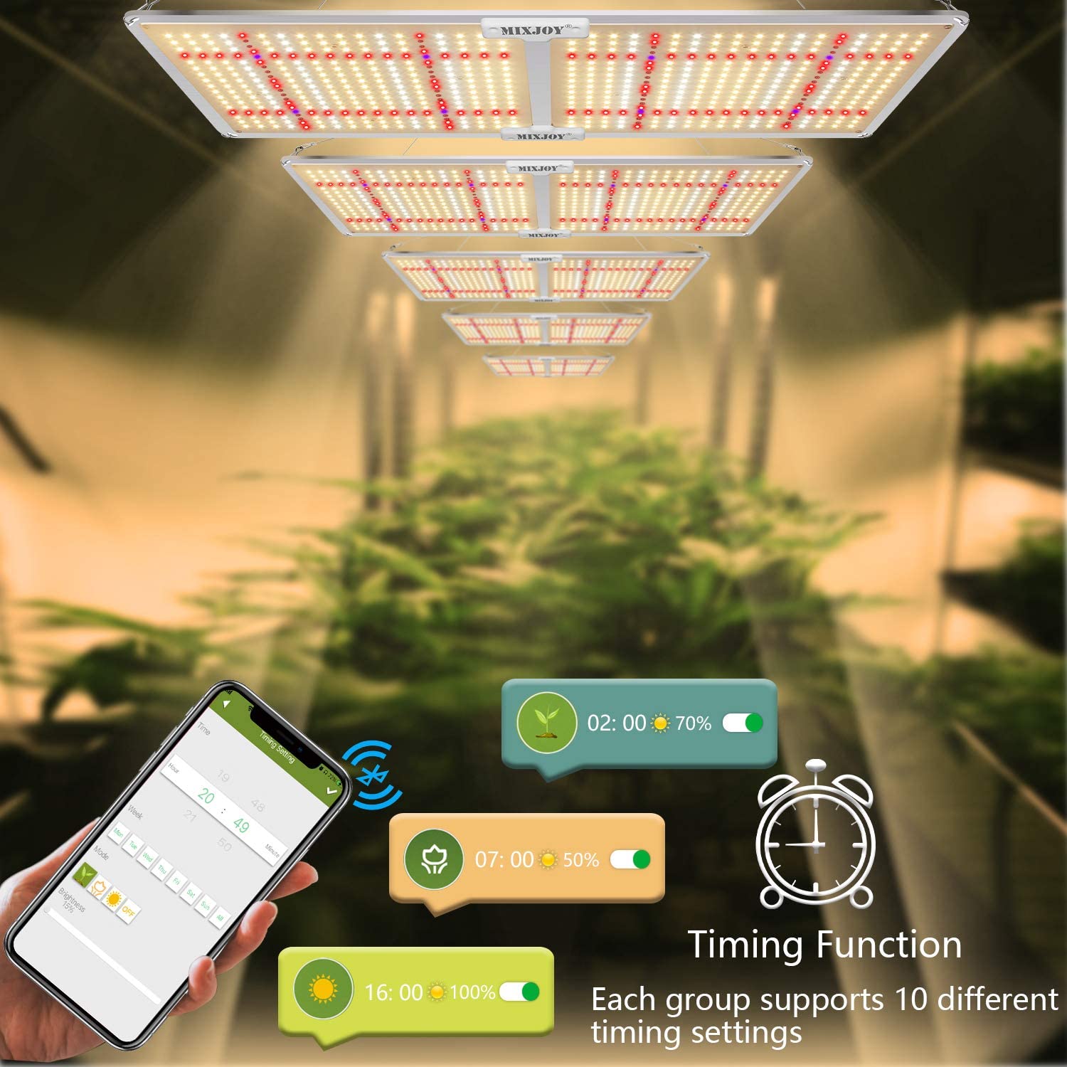 SMART REMOTE CONTROL: MIXJOY uses a 2021 upgraded Bluetooth Smart control system ‘GROW LAMP’ App, which can easily remotely control all grow lights via your smart Phone, including Group Control, Dimming, VEG/Flowering status and Timing setting (each group can support 10 different timing settings). Using your smart phone, you can connect one or unlimited LED grow lights at same time, without power cords, to Daisy Chain the lights and customize your plants’ growing status.