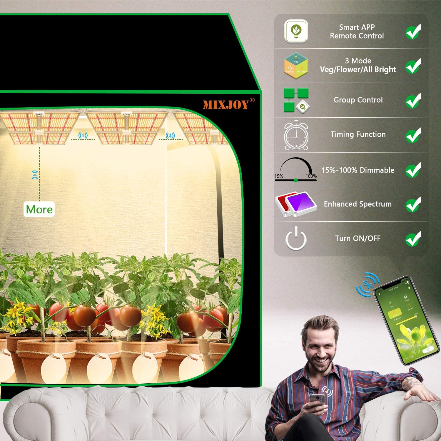 LOWER COST & HIGHER EFFICACY: Mixjoy super serious LED grow lights use our 2021 latest remote control technology, compatible with Samsung LM301b diodes and high-quality driver and can output more lights and PPF to drive maximum higher yields. Actual power consumes 450W, can output 30% more than other LED lights efficacy and 50% less power consumption than MH/HPS.