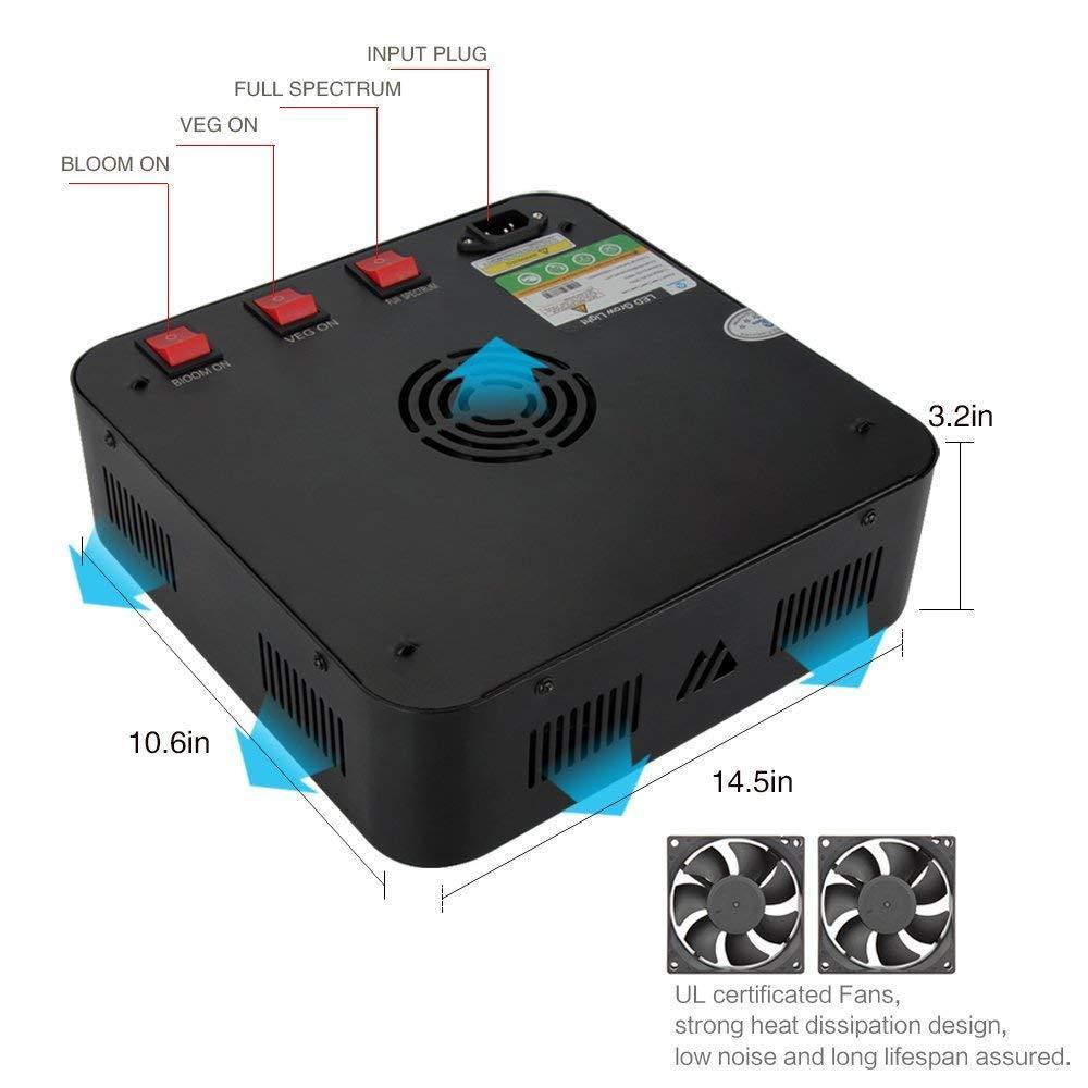 Dimmable and Durable: Two On-off switch on the back of the light, easily control the brightness of light, 1 UL certificated cooling fans, strong heat dissipation design and adopting isolated power supply, low noise, lifespan up to 50,000 hours.