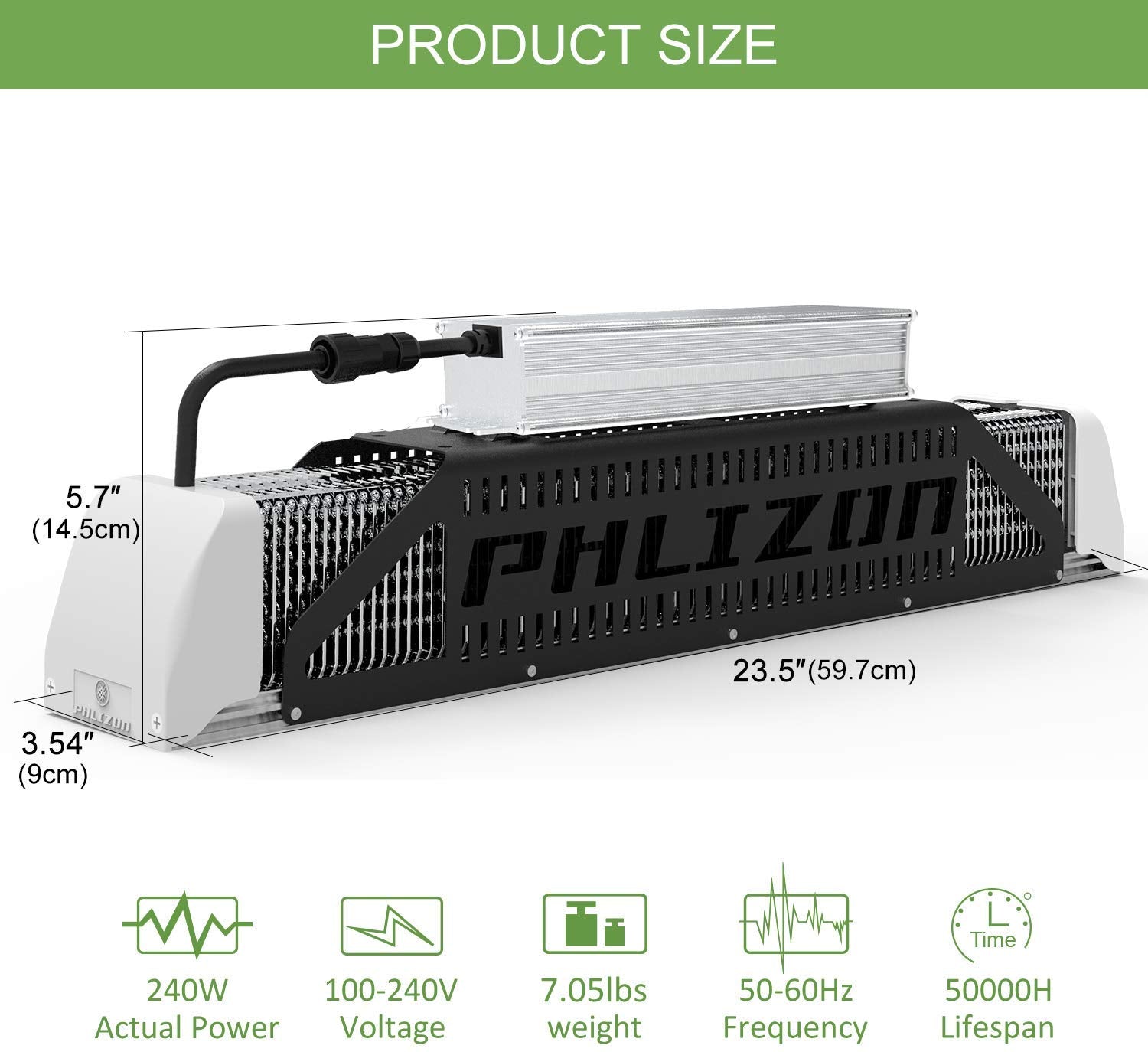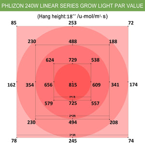 ENERGY EFFICIENCY- Actual power is 240watt with 675pcs SMD LEDs, light efficacy is up to 2.7umol/W, light output PPFD value is 815 umol/m² hanging at 18", SMD grow light is designed to replace tranditional 2000W HPS , lower temperature , more scientifically and energy-efficient. making you get 30% higher yield than HPS. Perfect for 2x4ft growing area, higher intensity in a Phlizon mylar reflective grow tent