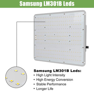 FULL SPECTRUM DESIGN- It contains 360pcs 3000K leds , 225pcs 6000K leds, 90pcs 660nm red leds. The 3000K and 6000K themselves are full spectrum led beads to ensure the scientific of the light source. Moreover , we have added additional 660nm leds beads which is the most important for plants growth. Lots of experiments has been done to ensure that this led distributions can promotes plant growth faster.