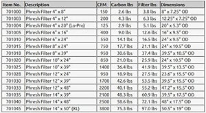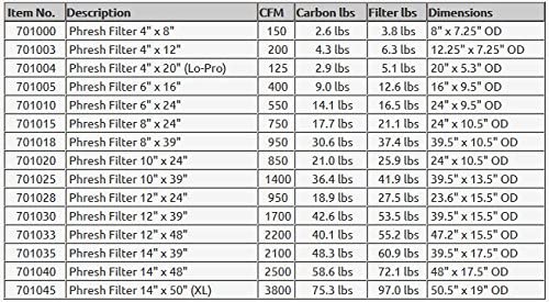 Aluminum tops and bases for reduced weight. Half the weight of other filters. 46mm (1.8") RC-48 activated, certified virgin carbon bed. Machine packed carbon means more carbon and less movement. Cone shaped internal base for optimum air flow. Sealed, bagged, boxed and labeled directly after being manufactured for optimum life span, handling and presentation. 51% open air custom mesh. Unique "Anti Air Bypass" System. Large selection of sizes available to fit any application. Flange & pre-filter included.