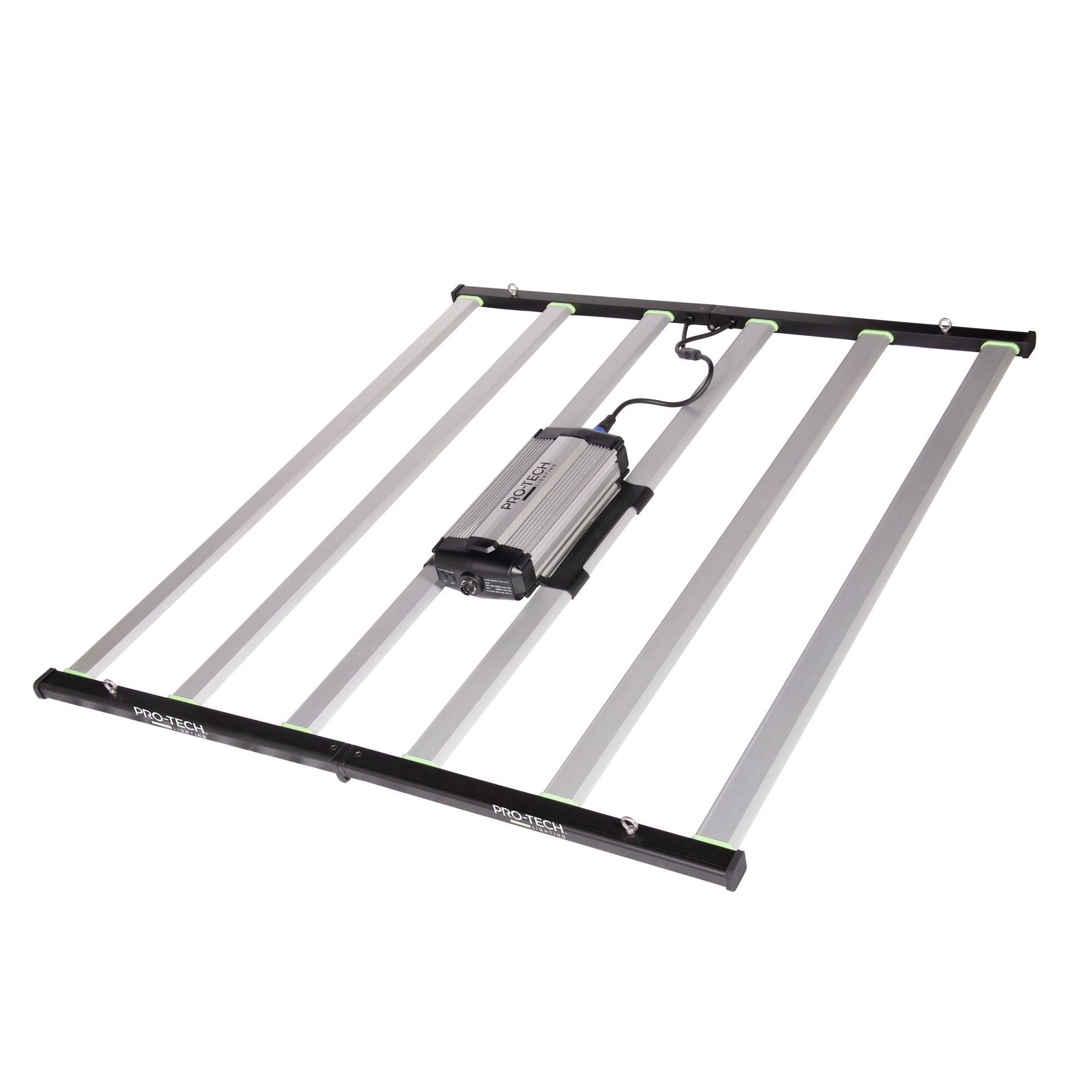 The high specification Pro Tech 645W LED is a linear multi-light bar fixture producing high PPF of 1800 µmol/s and a Photon Efficacy (fixture efficiency) of 2.8 µmol/J.