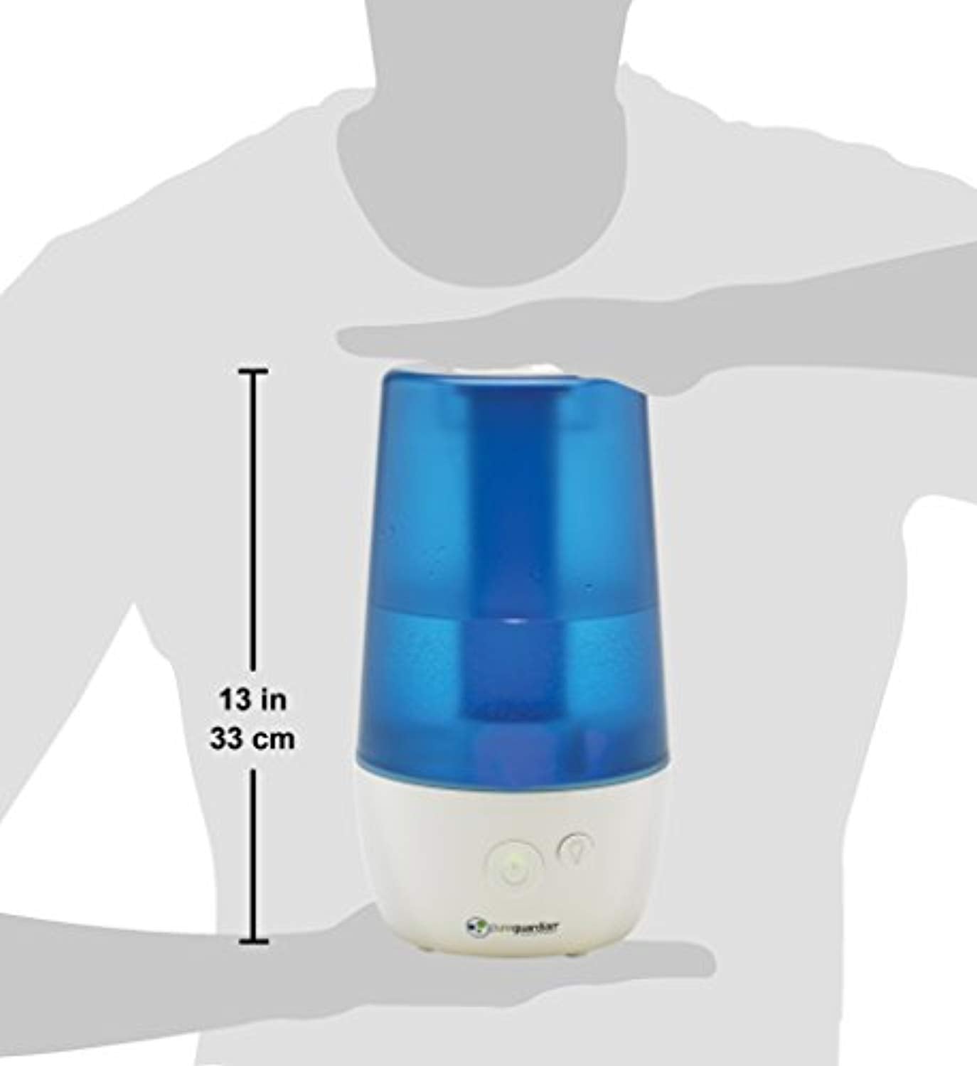 The 70-hour Ultrasonic Cool Mist Humidifier guards against problems caused by dry air in the home. It features an easy to fill 1 gallon tank, ideal for use in medium sized rooms. Unlike other humidifiers that grow slimy mold on the water tank surface, Silver Clean Protection is embedded in the tank to fight the growth of mold and mildew on the surface of the water tank. Thanks to ultrasonic technology, it disperses a fine mist into the air, and is ultra-quiet making it ideal to have on while you sleep. The humidifier emits a soothing cool mist, and a low water indicator light lets you know when it’s time to refill the water tank. Night light feature makes it a great addition to kids’ rooms. Pure Guardian humidifiers create a better home environment for those suffering from
