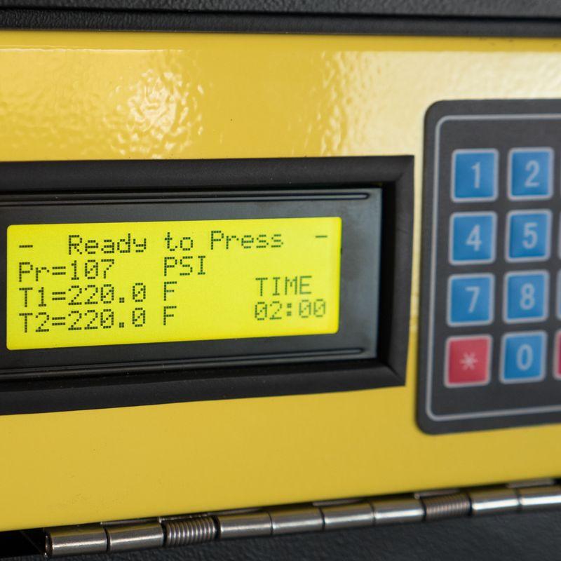 You control everything: heat plate temperatures, press time, operating pressure, and actuating speed.