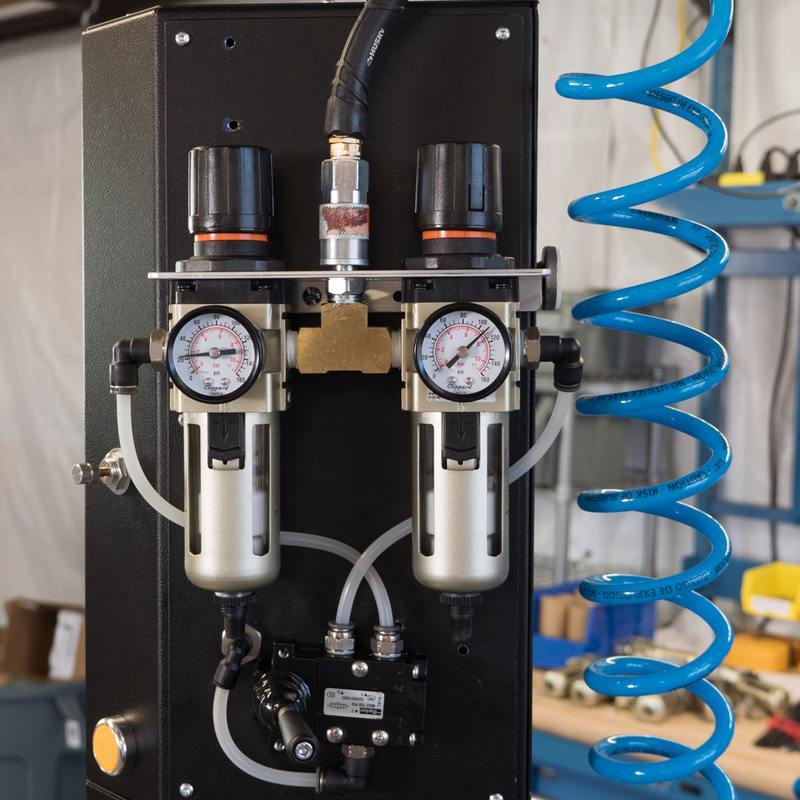 The pneumatic cylinder requires no oiling or maintenance. It generates nearly 5 tons of force with only 120 PSI compressed air.