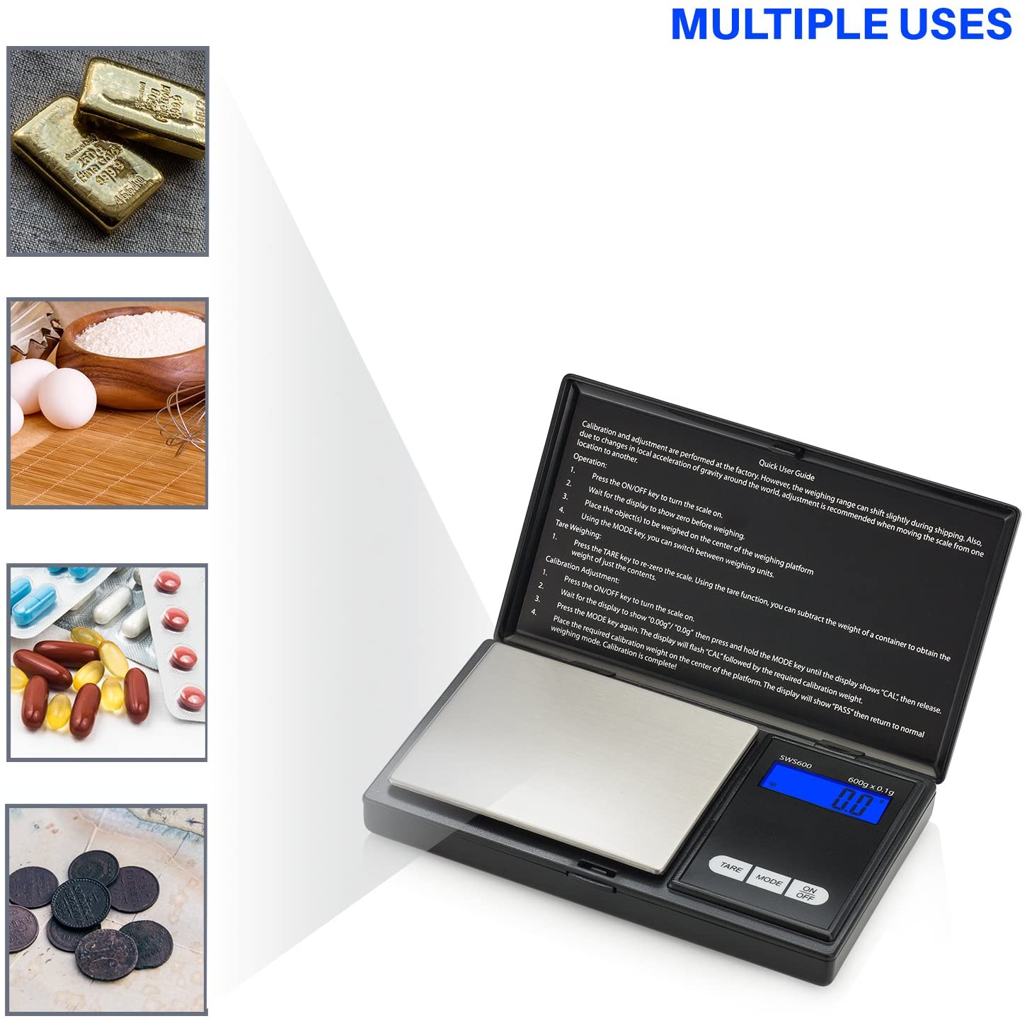 FEATURES– The SWS600 was crafted to be strong, durable, and pocket-size for your portable needs. It can weigh a variety of items such as food, tablets, gemstones, coins, jewelry,diamonds, grains,medicine, gold, or silver.