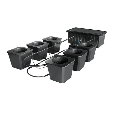 System includes six 10" large diameter net pots along with six 5 gallon Up-Welling, Deep Water Culture Bubble Buckets that are basically creating the equivalent to a day of pampering at the spa for your garden.