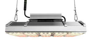 The Telos series is a range of full spectrum LED grow lights designed and manufactured in the UK by GN for growing taller plants in both harsh greenhouse conditions and indoor horticulture platforms. The Telos 10 has 10 30W modules, drawing 300W and providing a PPF output of 558.9μmol/s.