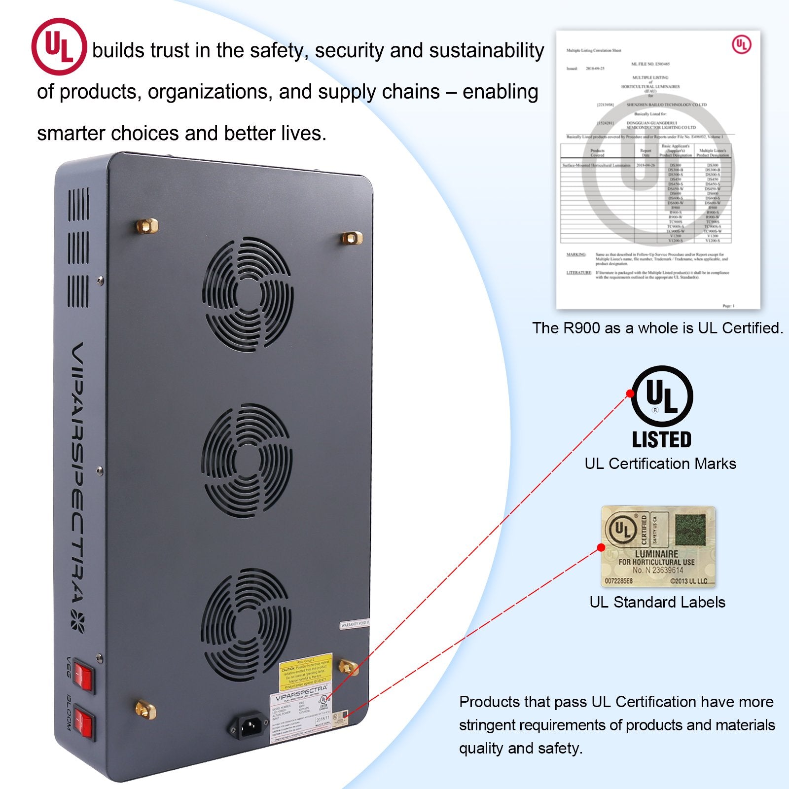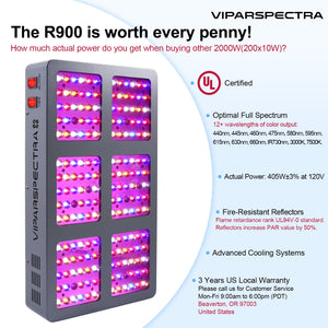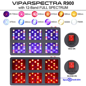 • VIPARSPECTRA Reflector Series R900 LED Grow Light is scientifically engineered to keep the balance of the PAR/Lumen Output and Coverage.