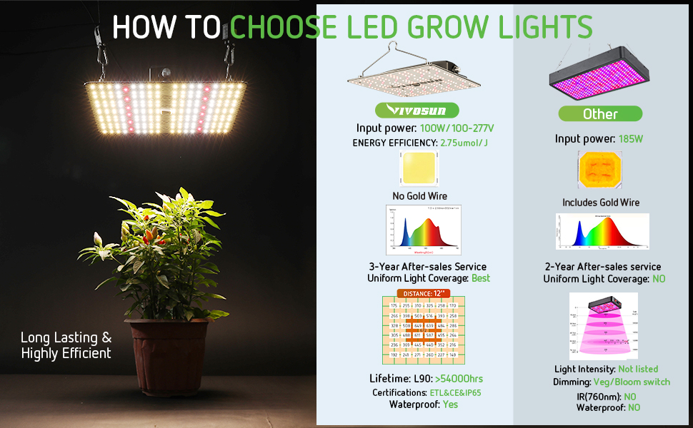 • DIMMABLE BALLAST: The VS1000 LED plant lamp has a dimming knob that makes it adaptable to different growing periods of your plant; It can adapt to the growth needs of plants in different periods. The first choice for beginners and professional growers alike