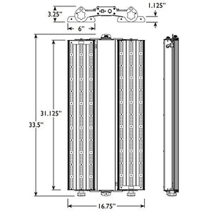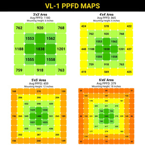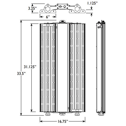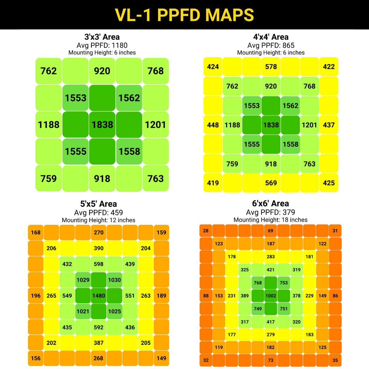 Adjustable panels can be tilted outward for wider, more even coverage or inward for more concentrated, central light output. The low heat output allows it to be placed as close as 6 inches from canopy without damaging plants. The recommended mounting height is 6-12 inches from the canopy.