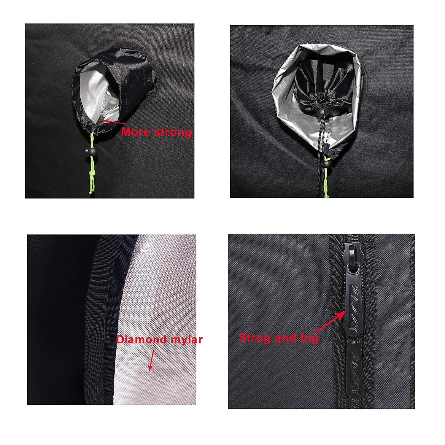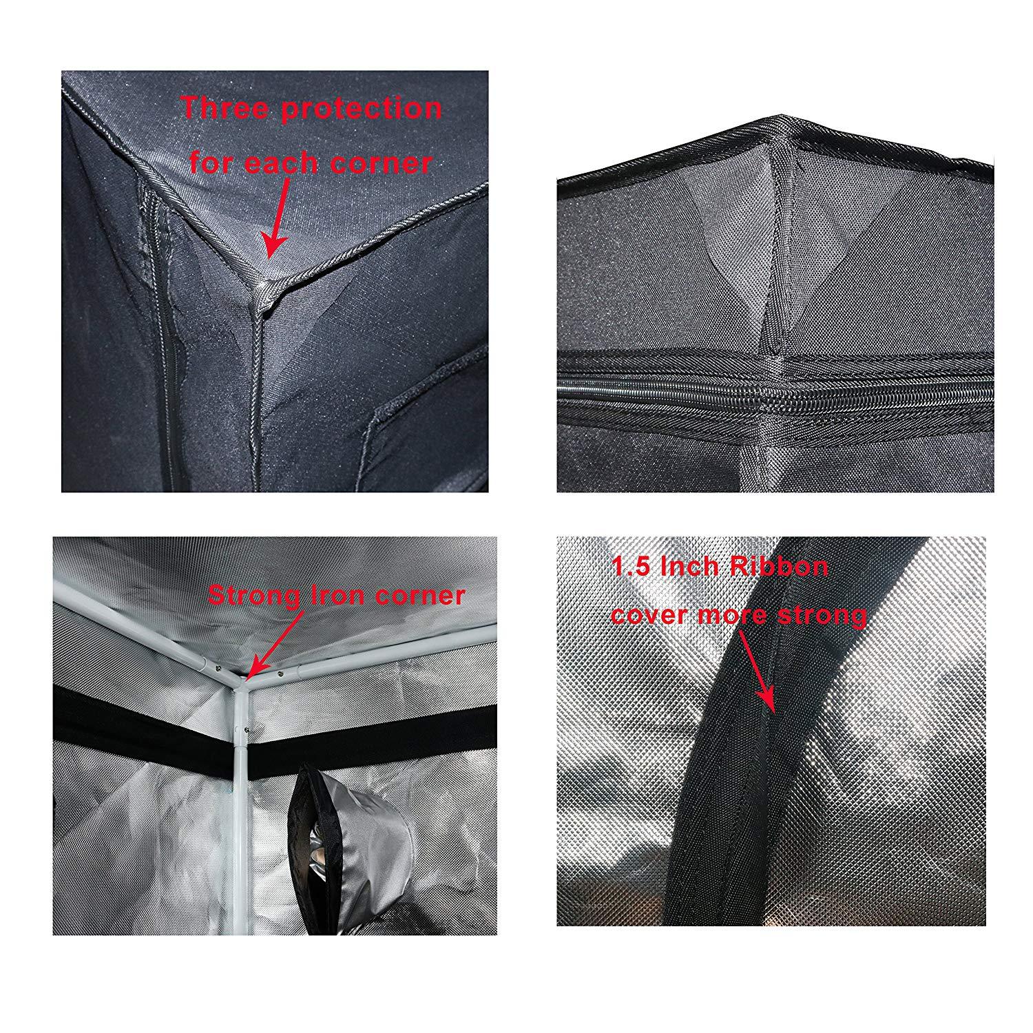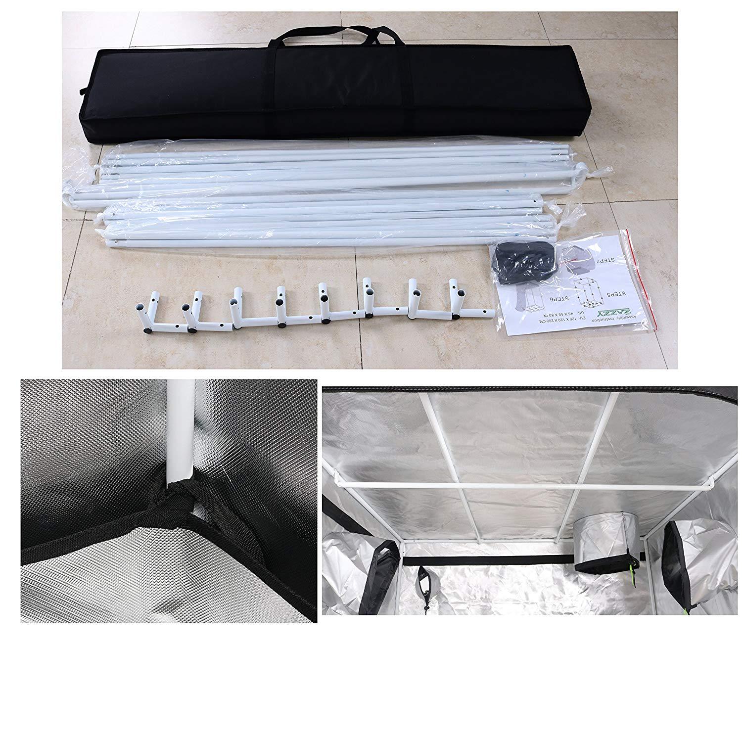 Package Includes: 1 Zazzy Grow Tent, 1 100% Water-Resistant Removable Mylar Floor Tray for easy cleaning, 2 Filter Straps and 1 user manual EASY ASSEMBLY: Includes an instructional pamphlet for easy set up. This is a great hydroponics growing light kit system starter, whether you want to set up your indoor garden in an apartment, condominium, greenhouse, or any rented space. HIGHLY REFLECTIVE: Includes a removable Mylar floor tray, and a 100% light-proof, tear-proof reflective Mylar lining to assist your indoor growing light fixtures and equipment. Increase the intensity of your grow lights and retain heat to keep your grow room at the right temperature for your plants, flowers, fruits, and vegetables to thrive. Sturdy Frame: Heavy duty all steel poles which are rated to handle at least 110 lbs. The frame is specially finished to ensure smooth installation and safe handling. Light Proof: Our large heavy duty Zippers & 1.5" ribbon protect the tent from light leaking and ensure durability and long-lasting use. Let you control the climate and lighting so you can grow any plant in any place safely and easily